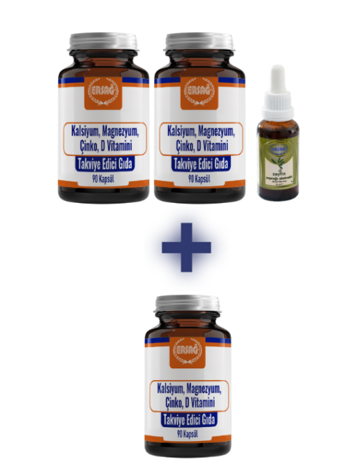 Sağlıklı yaşam yolculuğunuzda size ekonomik bir çözüm sunuyoruz. Bu özel paket dahilinde; 2 adet Kalsiyum, Magnezyum, Çinko, D Vitamini ve 1 adet Zeytin Yaprağı Ekstraktı satın aldığınızda, 1 adet Kalsiyum, Magnezyum, Çinko, D Vitamini hediye edilmektedir. Toplamda 4 üründen oluşan bu setle uzun süreli kullanım avantajına sahip olun.