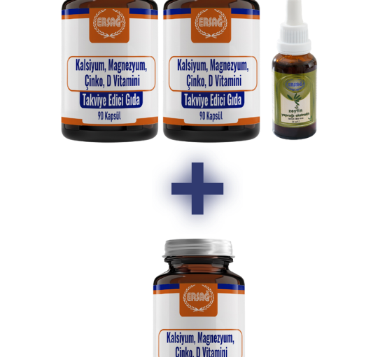 Sağlıklı yaşam yolculuğunuzda size ekonomik bir çözüm sunuyoruz. Bu özel paket dahilinde; 2 adet Kalsiyum, Magnezyum, Çinko, D Vitamini ve 1 adet Zeytin Yaprağı Ekstraktı satın aldığınızda, 1 adet Kalsiyum, Magnezyum, Çinko, D Vitamini hediye edilmektedir. Toplamda 4 üründen oluşan bu setle uzun süreli kullanım avantajına sahip olun.